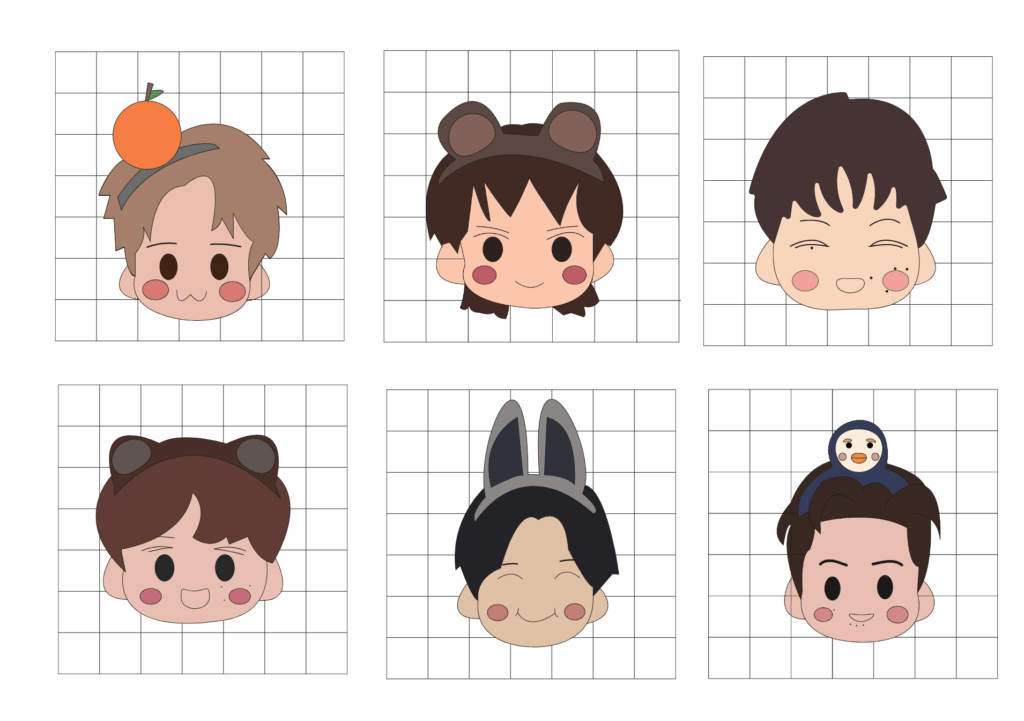 Proceso de vectorización y digitalización en Adobe Illustrator, aplicando técnicas de color para destacar la expresividad y personalidad de cada figura.